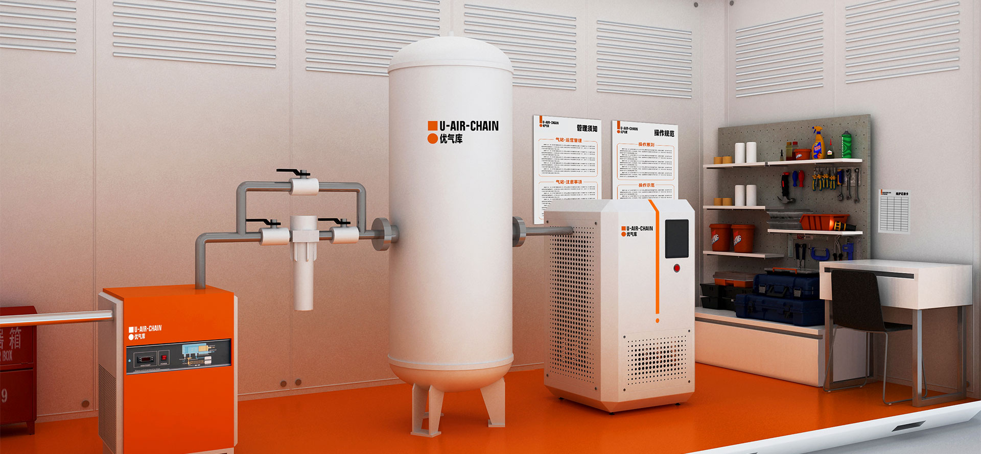 U-AIR CHAIN (優(yōu)氣庫)是一家立足于螺桿空氣壓縮機、工藝壓縮機研發(fā)、設(shè)計、生產(chǎn)和銷售、服務(wù)的現(xiàn)代化壓縮機智能制造公司,同時也是一家智慧空氣動力站房節(jié)能、大數(shù)據(jù)管理的科技公司。